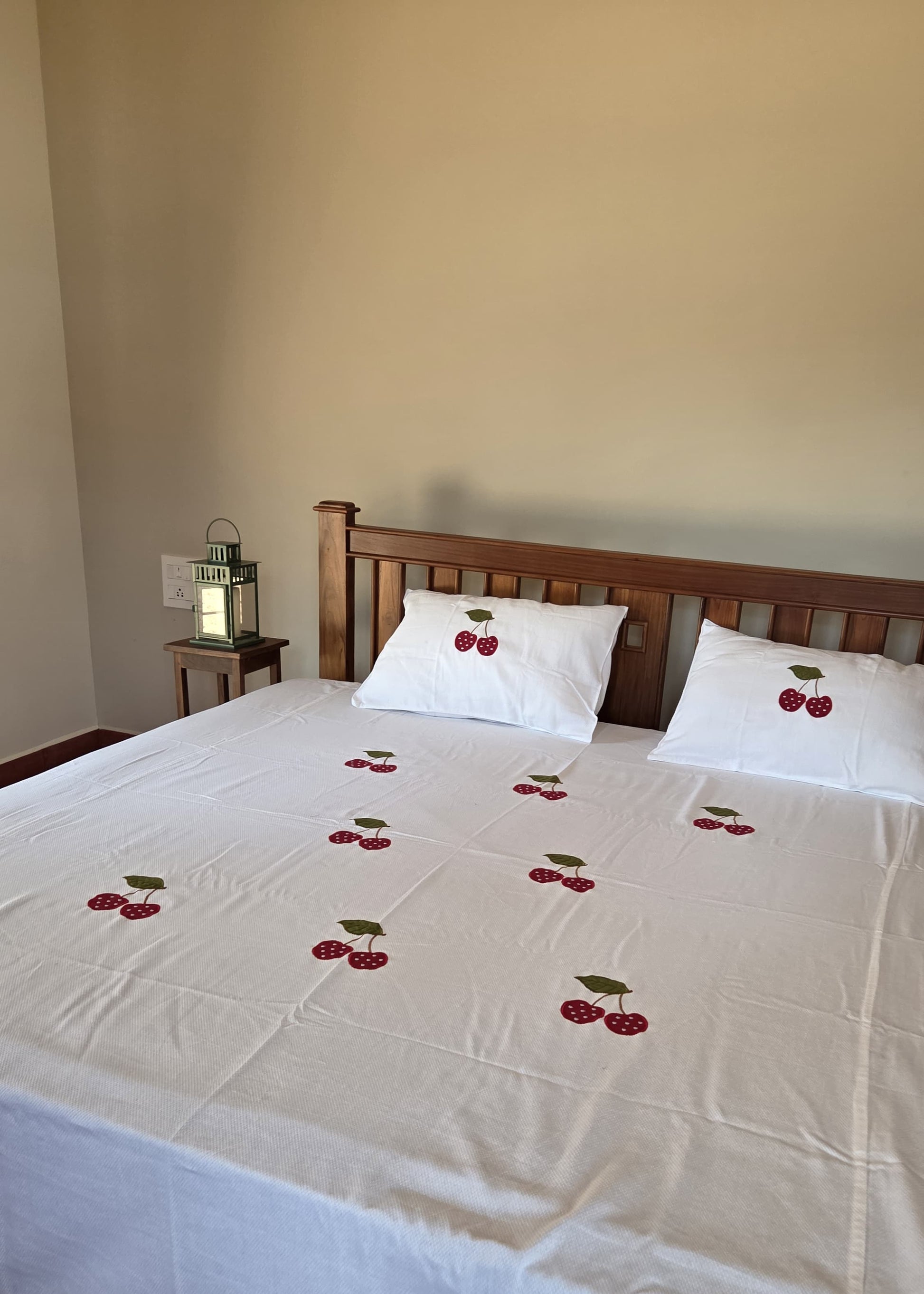 This king-size textile features exquisite applique work combined with detailed embroidery, showcasing expert craftsmanship. Its intricate design adds a sophisticated touch to your bedroom, enhancing both style and comfort with premium quality materials. Ideal for those seeking a refined and elegant bedding option.