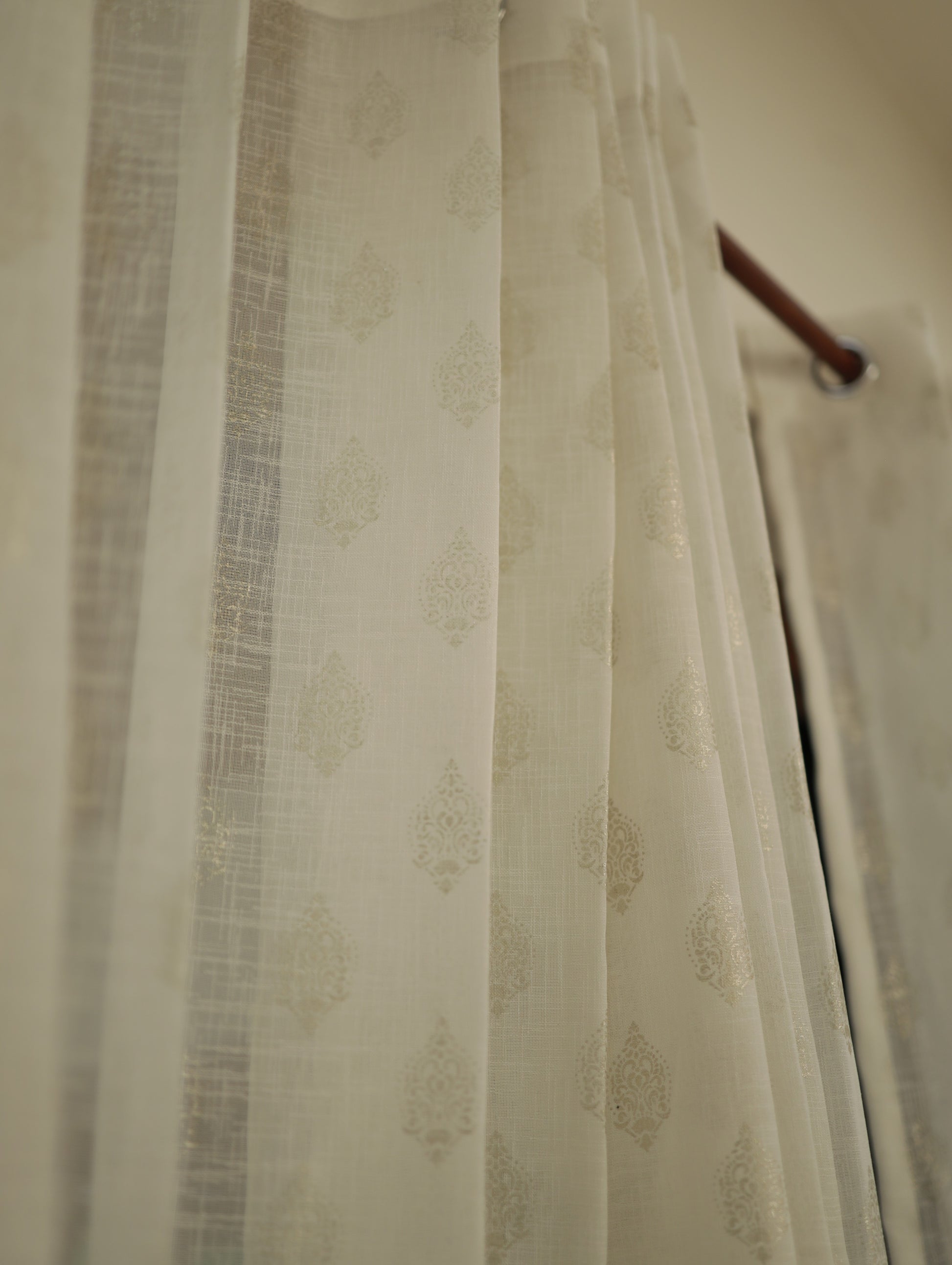 Elevate your interiors with this linen curtain featuring a refined foil print. Crafted from breathable linen, it offers natural texture and durability, while the subtle foil accents add a sophisticated shimmer. Perfect for filtering light softly, this curtain balances style and function, enhancing any living space with an expert touch.