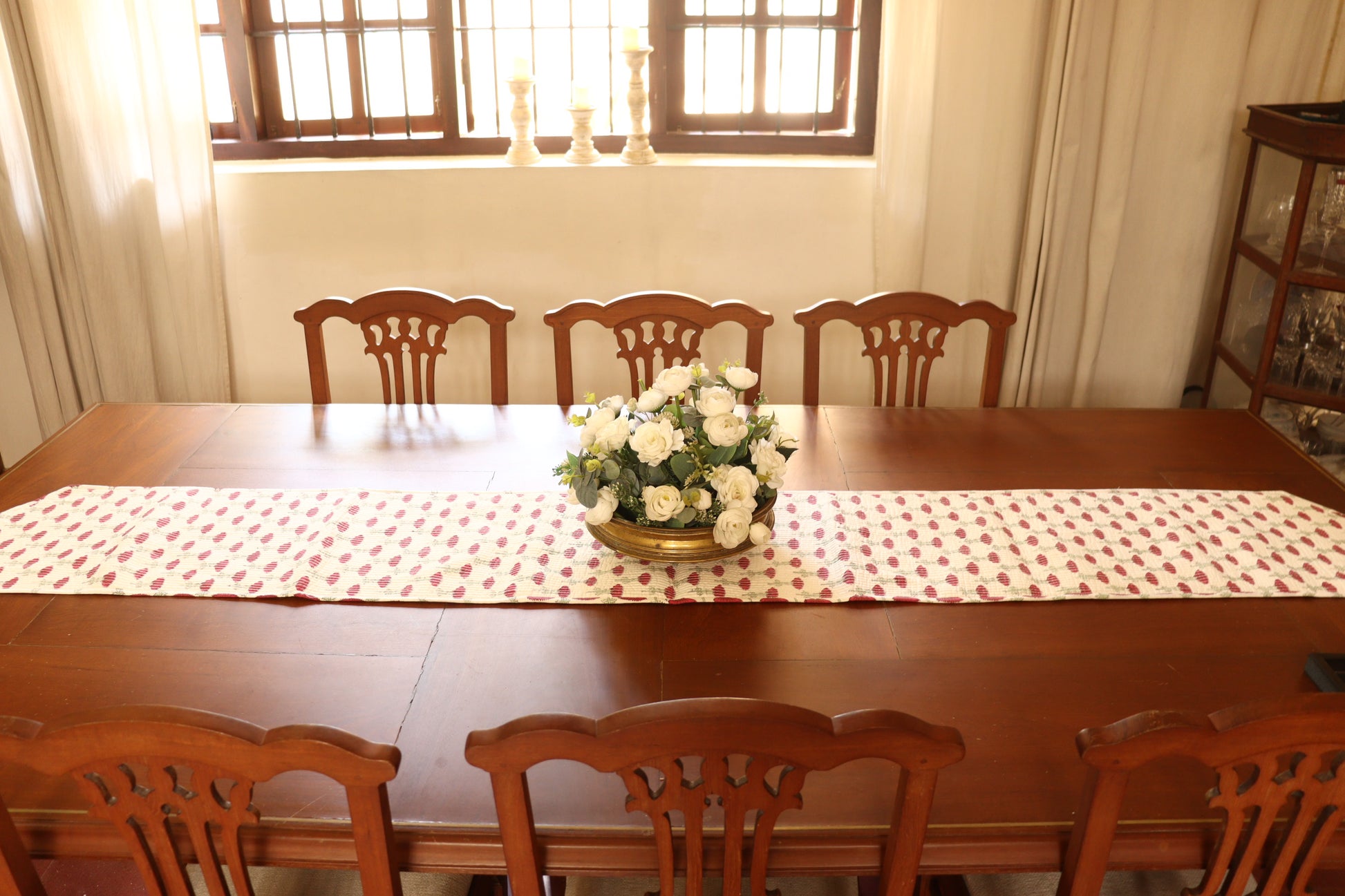 Enhance your table setting with our Quilted Hand Block Runner. Made with expertly handcrafted quilted design, this runner brings a touch of elegance and sophistication to any occasion. The intricate patterns are sure to impress your guests, while the durable fabric ensures long-lasting use for all your gatherings.